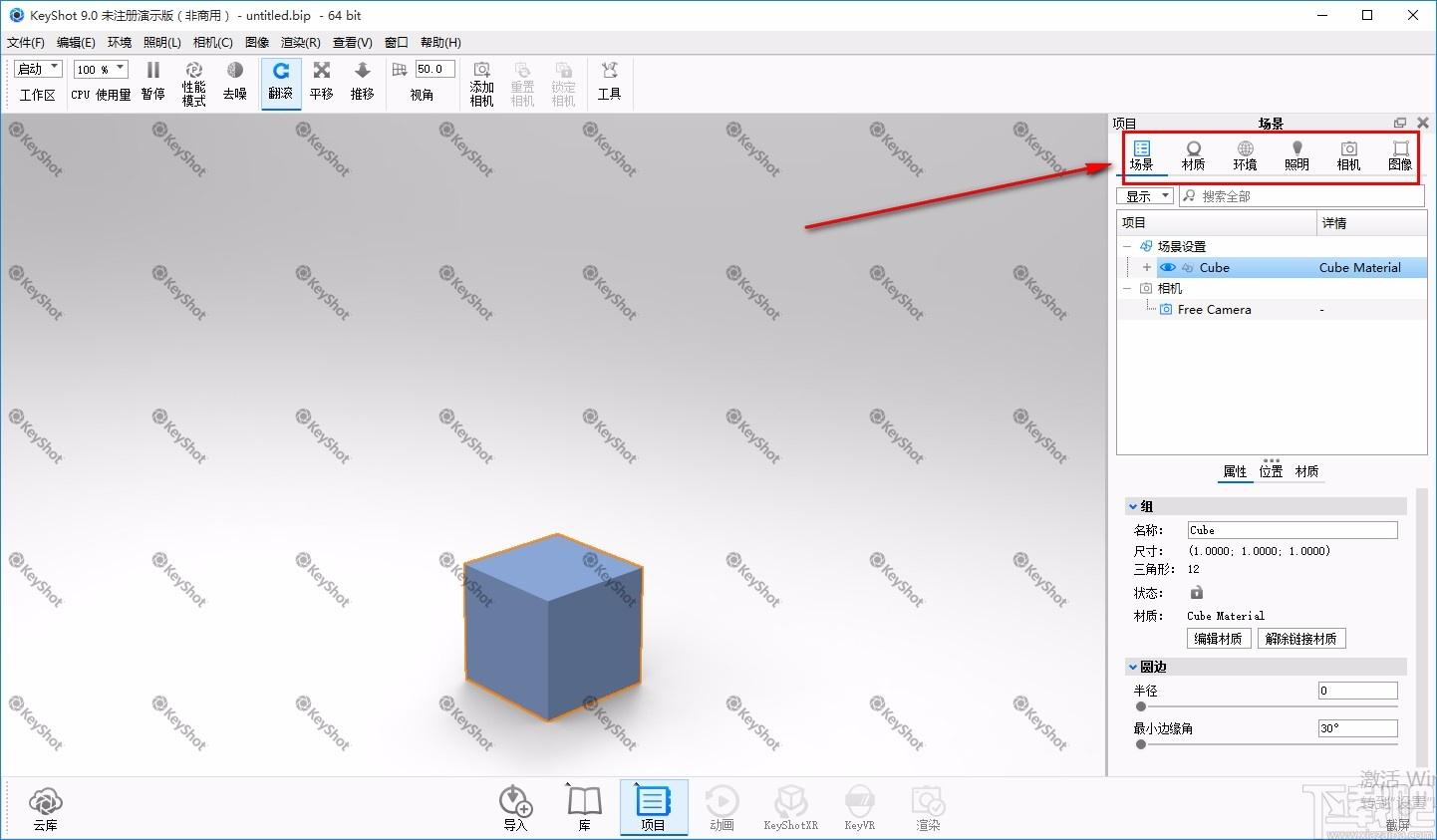 项目设置:能够通过该功能对图形的场景、材质以及环境等参数进行设置